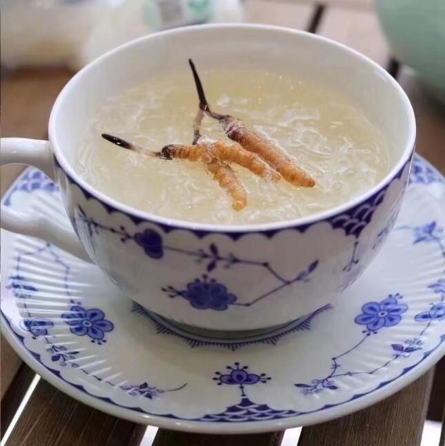 2、泡水:將適量的冬蟲夏草放入溫水中泡發(fā),一般需要泡發(fā)數(shù)小時至一夜,直至冬蟲夏草膨脹柔軟。然后可以直接飲用泡發(fā)后的冬蟲夏草水,也可以將泡發(fā)后的冬蟲夏草加入其他茶水或湯中。